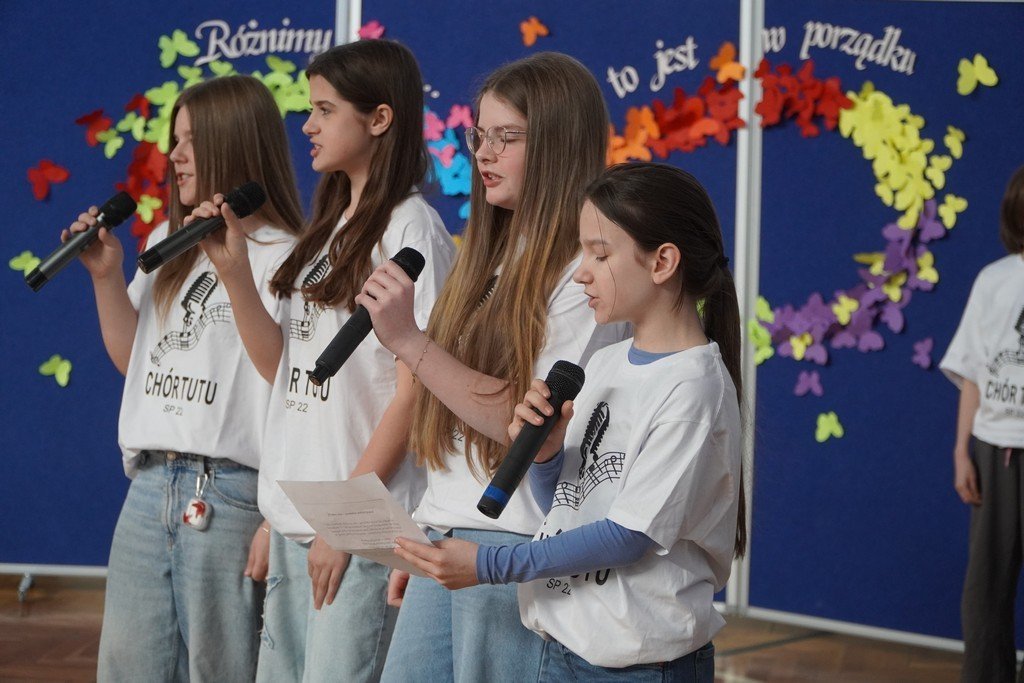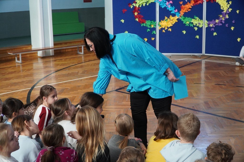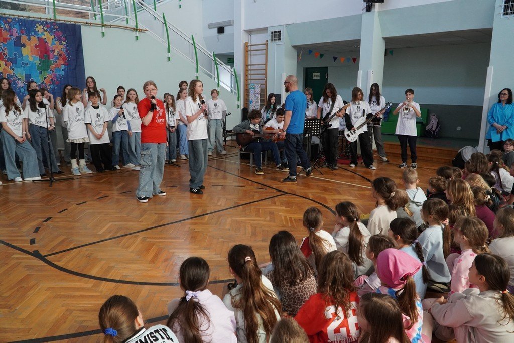 Podczas jednej z przerw Dzieci z klas I–III spotkały się na sali gimnastycznej, gdzie chór szkolny oraz Uczniowie klasy 2c zaprezentowali trzy utwory: „Nieidealna”, „Autystyczny” oraz „Wielka siła”. Występ wprowadził wszystkich w wyjątkowy, pełen refleksji i życzliwości nastrój.