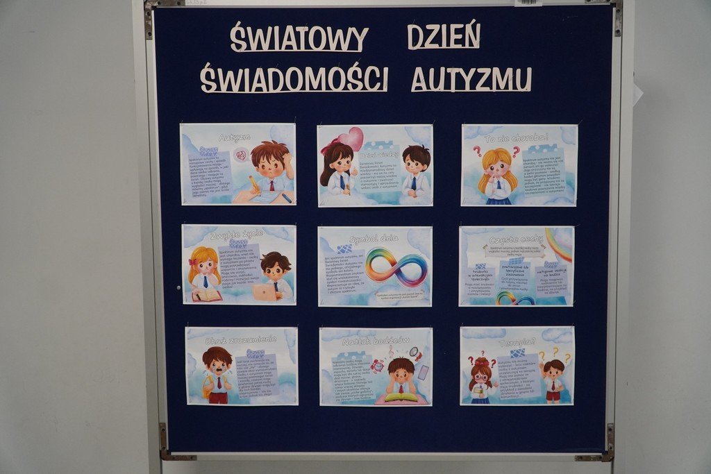 1 kwietnia w naszej Szkole odbyły się obchody Światowego Dnia Świadomości Autyzmu. Z tej okazji serdecznie zachęciliśmy, zarówno Uczniów, jak i Nauczycieli, do założenia ubrań w swoich ulubionych kolorach, co stało się pięknym symbolem różnorodności i indywidualności każdego z nas. Przestrzeń szkolna została pięknie udekorowana – centralne miejsce zajmował symbol nieskończoności wraz z hasłem „Różnimy się i to jest w porządku”, podkreślającym ideę akceptacji i szacunku dla każdego człowieka.